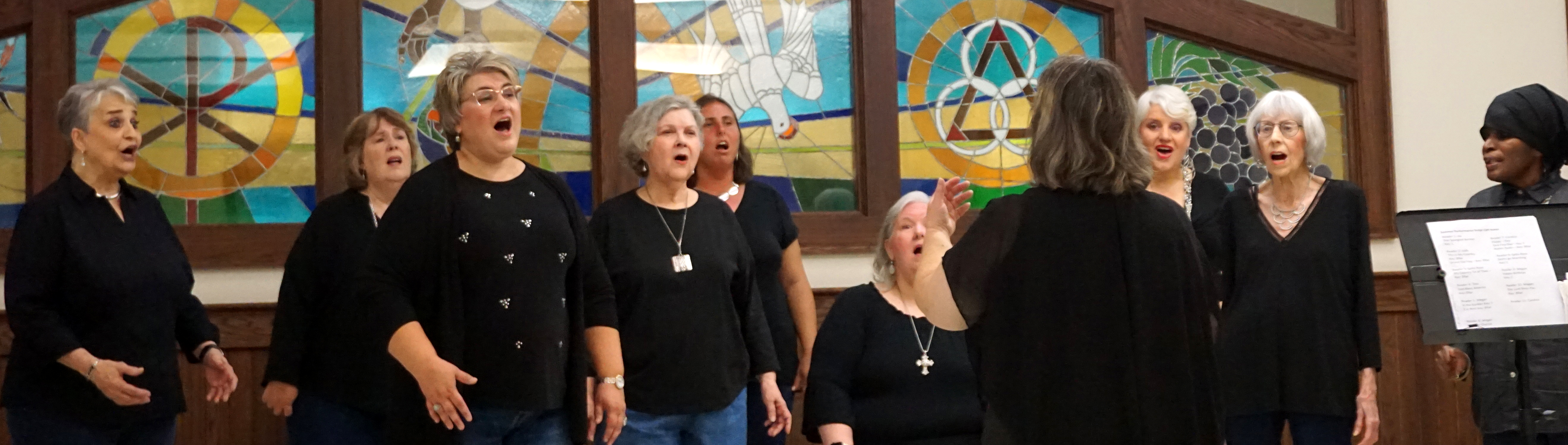 This past rehearsal, we had four returning visitors from the first night of the drive - and one new guest as well! (One person had to leave early, so unfortunately she missed this photo op.) Several are planning to become part of the chorus. More visitors are expected to attend in the weeks to come. If you're a female singer in North Louisiana and are still pondering about this, take your cue from these women. It's great, great fun and very rewarding! ![]() |
