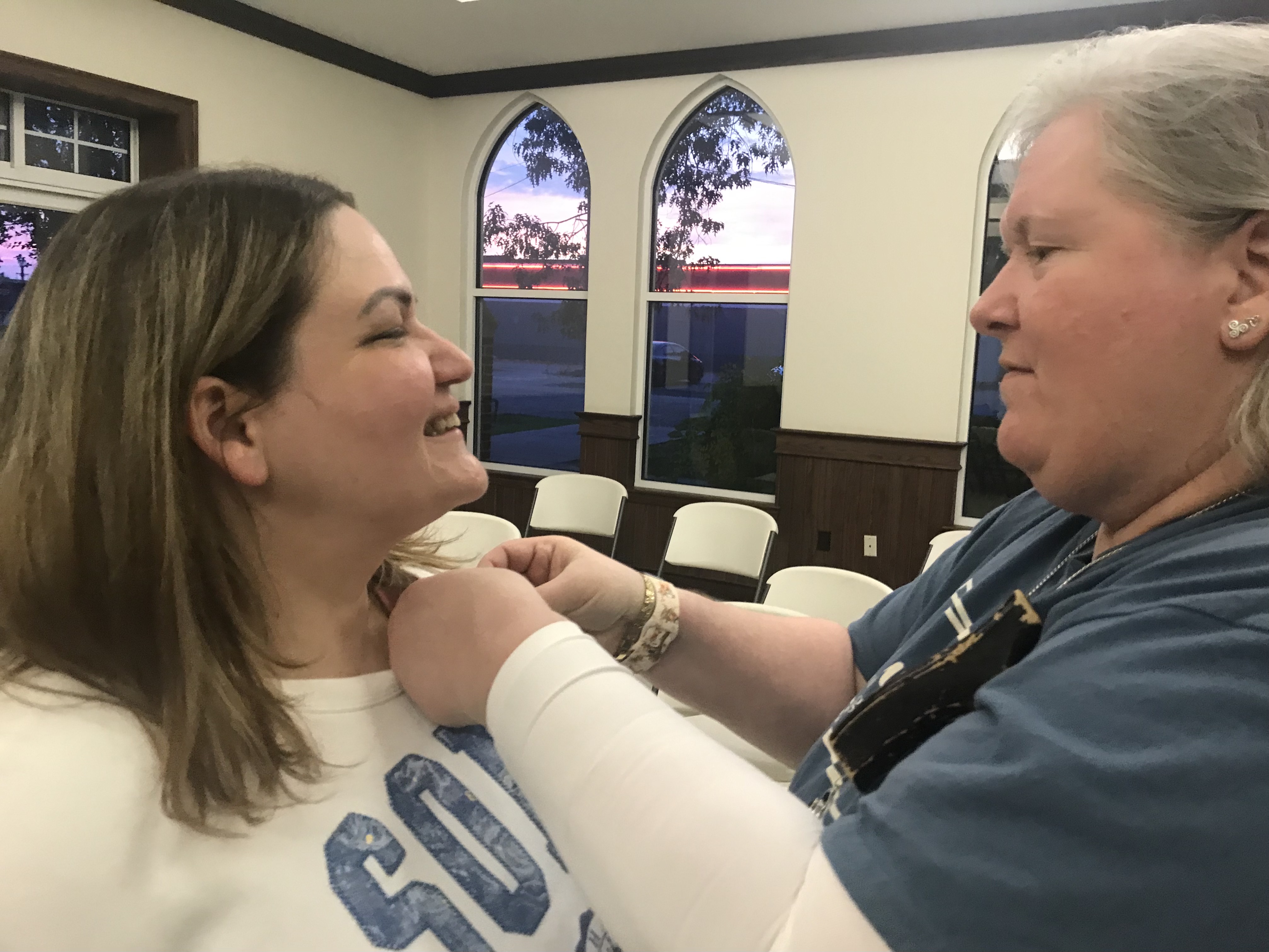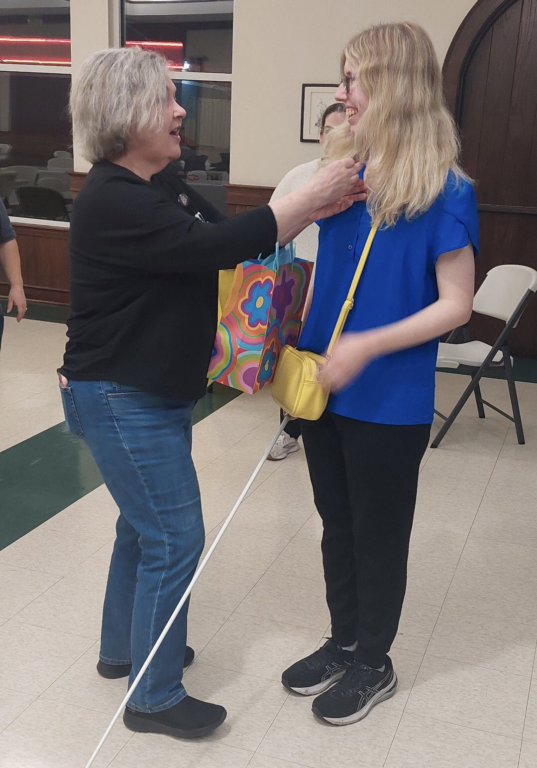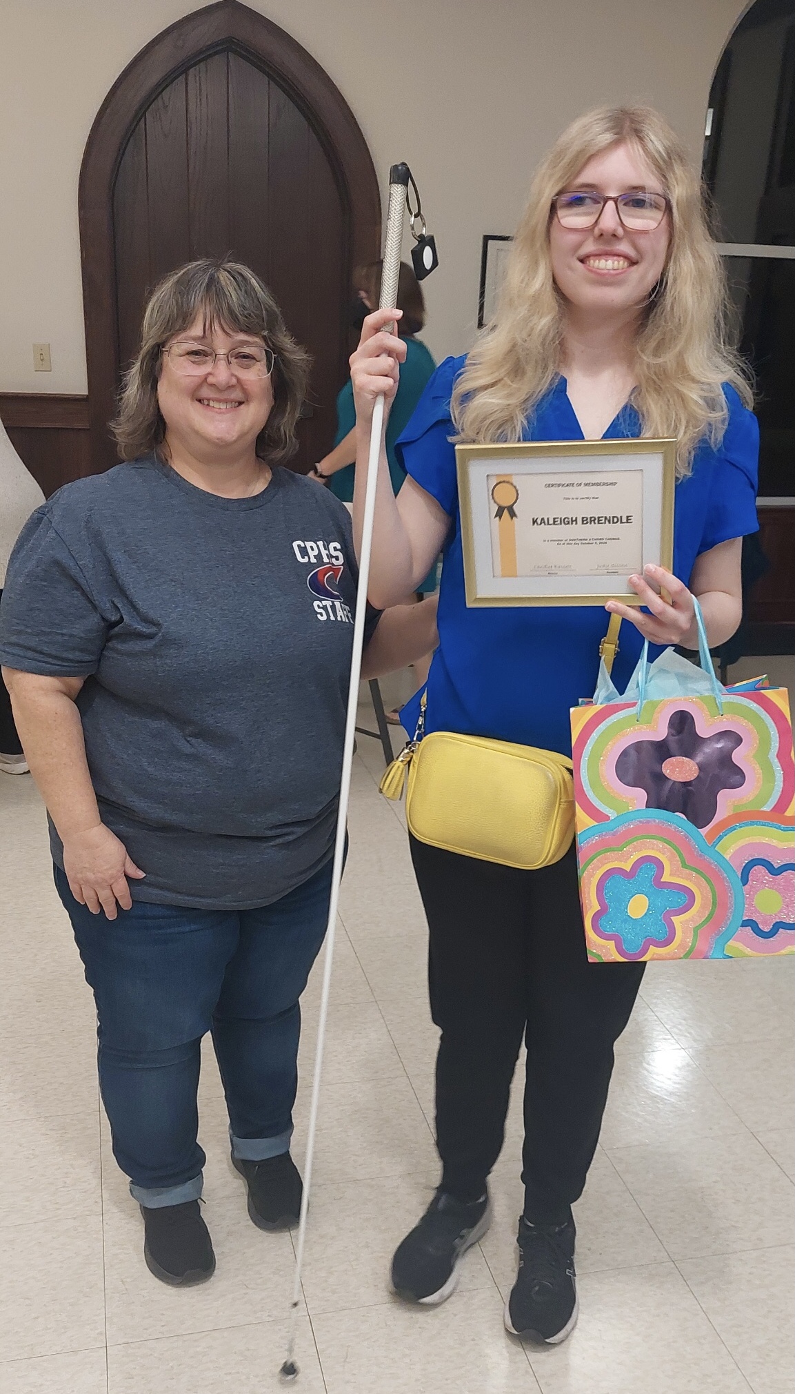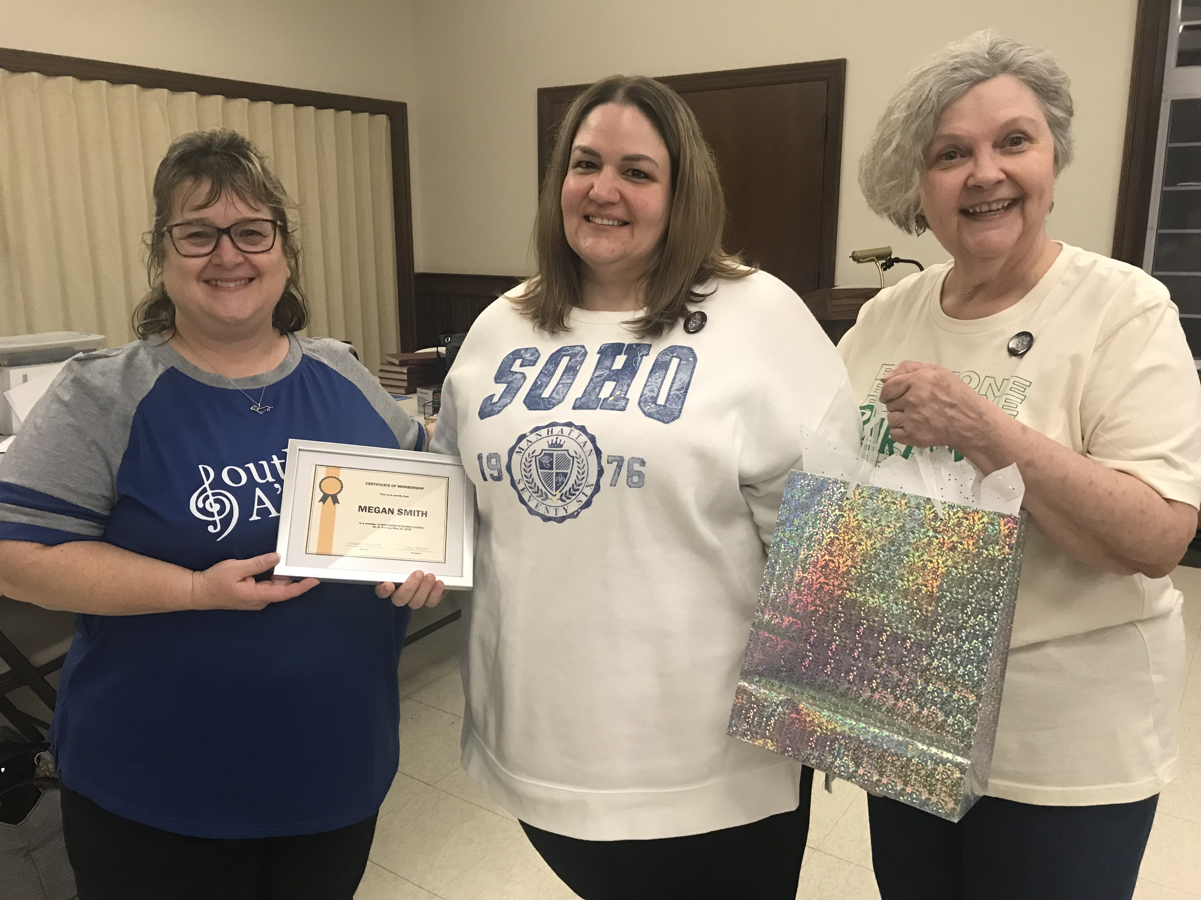 Left photo: President Lynette Murphy pins Rachel during her Welcome Celebration. Right photo: Director Candice Bassett presents RozAnne with her membership certificate. ![]() |