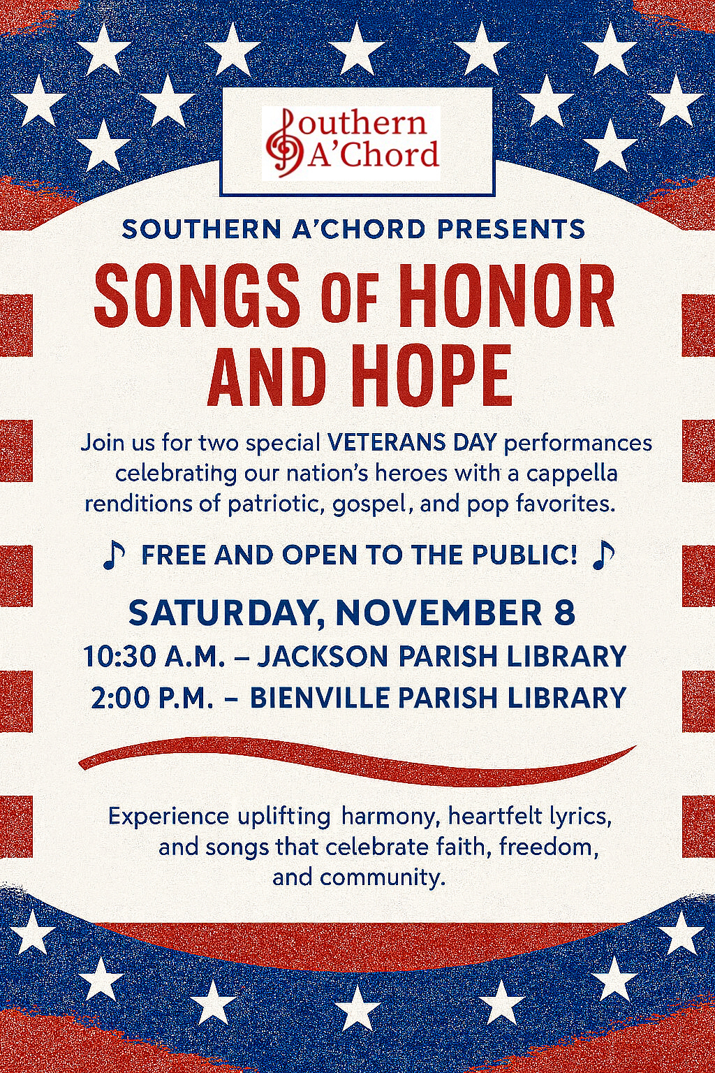 * Note: Reservations are needed for the Bienville Parish performance due to limited seating.